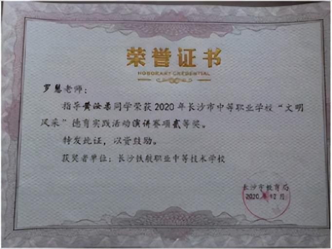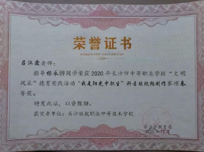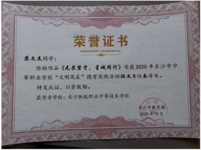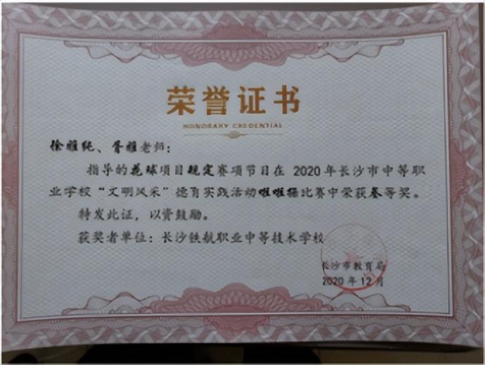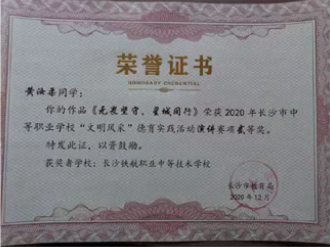 长沙市中等职业学校“文明风采”才艺作品评选中瞿曼婷同学,黄奕致同学荣获“三等奖”