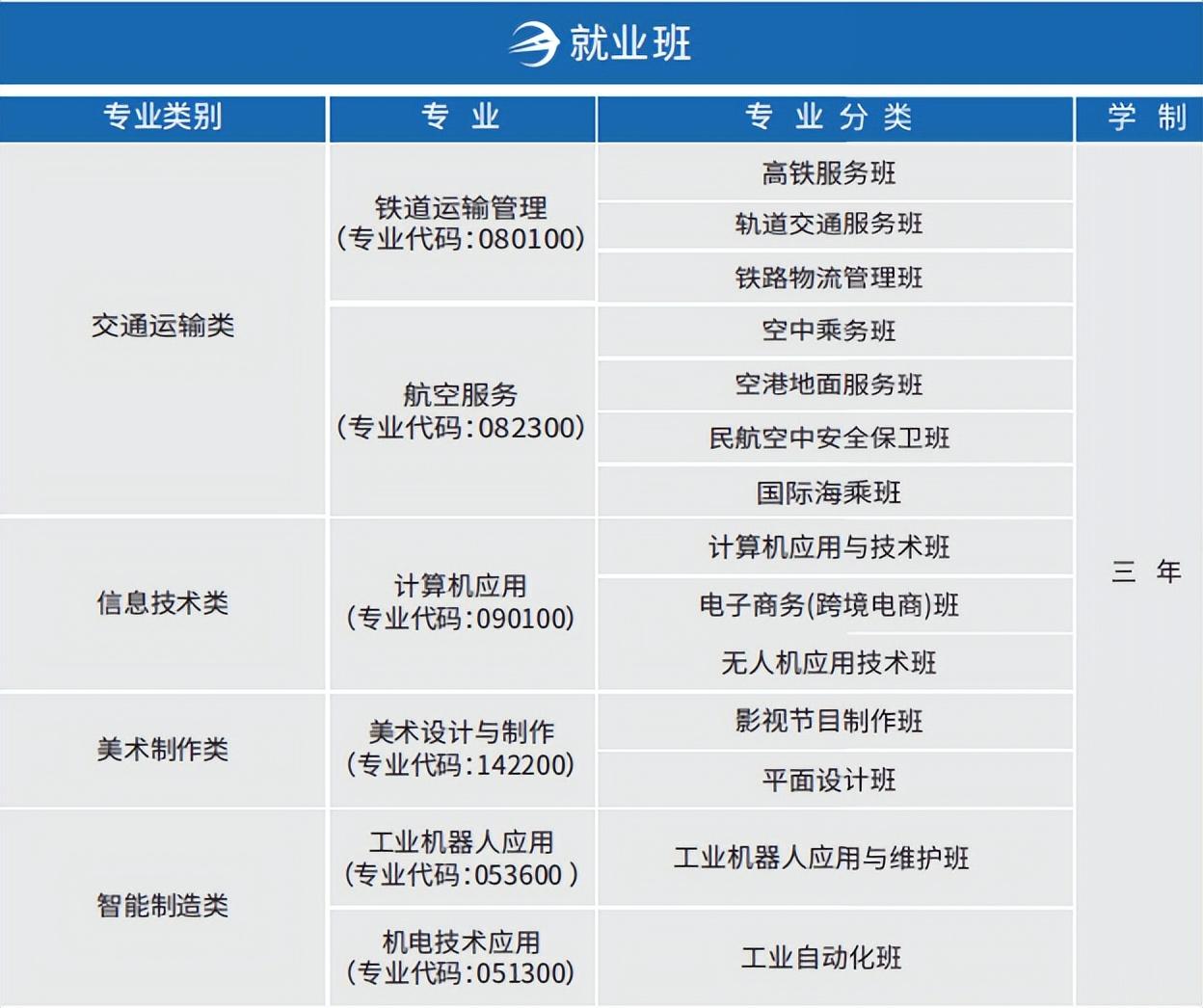3、学校专业前沿,双师型教师教学我校主要开设了铁道运输管理专业、航空服务专业、计算机应用专业。人才需求量大,行业和岗位稳定、前沿、时尚、阳光、体面。学校的专业老师均为拥有多年行业工作经验的精英或专业人才,实践经验丰富,与传统的纯理论教学模式不同,将根据在技术上零基础的实况,将行业最新需求融入教学过程,真正让学生们在轻松、快乐中学习。4、保障学生高端、高薪、高质量就业学校与多家用人单位建立了校企合作、订单培养的合作关系,校内成立了校企合作项目实训基地和校办工厂,真正做到校企合作、订单式培养,实现入学即入职,毕业即就业。学校拥有互动式就业平台,就业方便快捷;多元化的就业渠道,就业畅通无阻;体系化就业网络,就业网络覆盖全国。5、职业化、半军事化管理学校围绕“百年树人,以德为本”的育人要求,采用严格的现代化职业教育管理体系,全方位实施素质教育和半军事化管理,对学生的日常行为规范进行严格管理,纠正不良的生活和学习习惯,让学生学会做人、学会做事,从而符合新时期社会的用人要求。学校实行全天候安保服务,学校拥有专职班主任、宿舍管理员、心理咨询老师紧密配合学生在校的管理,为学生的生活和学习提供亲情式服务。