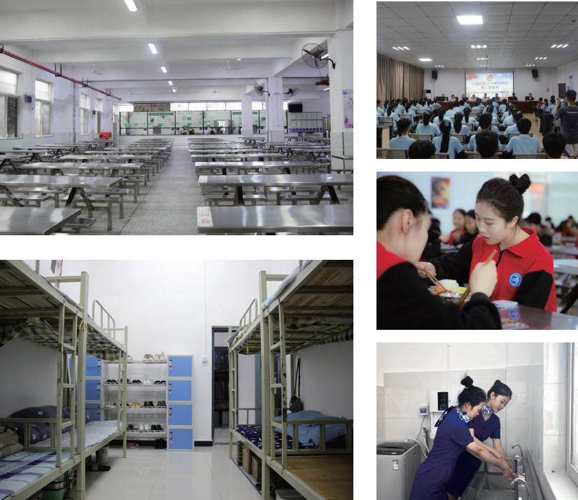 1、在餐饮方面,可同时容纳千人就餐的食堂,菜品丰富多样,三菜一汤荤素搭配,使学生营养搭配均匀,同时食堂配备加菜窗口,确保学生吃饱吃好。2、学生宿舍内配置空调、热水器、吹风机、独立卫生间、让学生在学习之余有个舒心的休息空间。3、全校教职工陪餐制度,学生与老师同吃同学,不分彼此。4、我校成立了党支部和共青团组织,思想表现良好,综合素质高的学生可以加入共青团组织,也可以通过学校党支部加入党组织。5、学校实行封闭式军事化管理,专职班主任全程跟踪服务,营造安全、舒适、温馨的生活学习环境。此外,学校有礼仪队、篮球、吉他、舞蹈等多个社团,学生可以在课余时间参与各社团活动,校园生活丰富多彩。