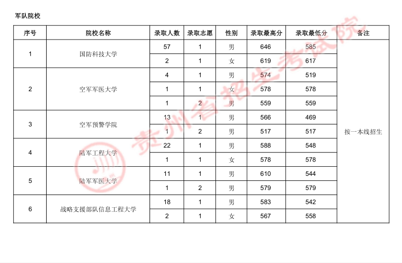 军队院校(男)文史类录取分数线录取分数线靠前的院校:
