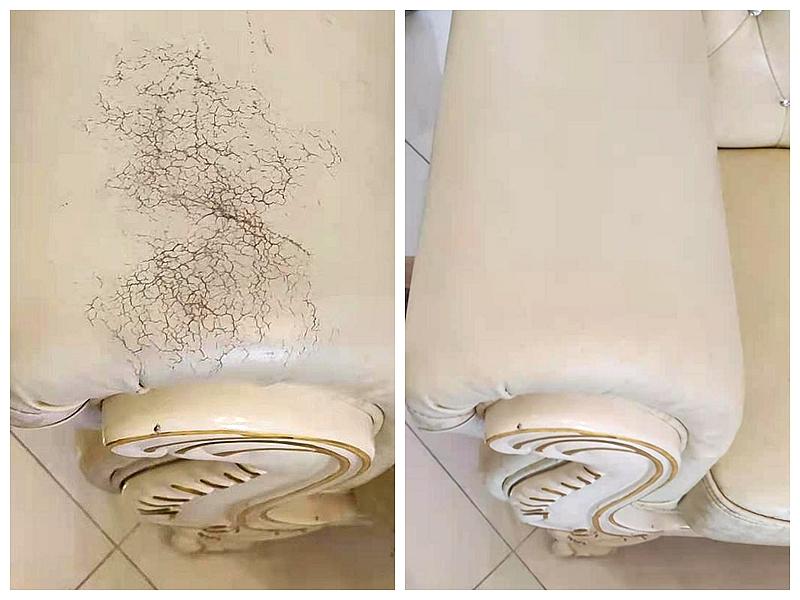 除了修复家具,皮沙发、大理石他都能修复,下图是他把开裂的旧沙发修复一新。
