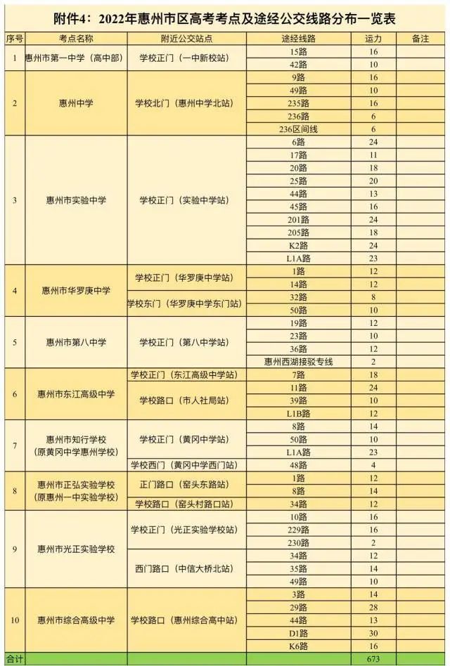 6月7日至9日,在惠州市实验中学、惠州市知行学校、惠州一中实验学校、惠阳区第一中学高中部、华南师范大学附属惠阳学校门前设置一条接送考生车辆专用通道,禁止其他车辆通行。