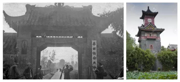 华西协合大学和钟楼 荷花池 来源:Stock Photo - West China bell tower at Huaxi Medical University