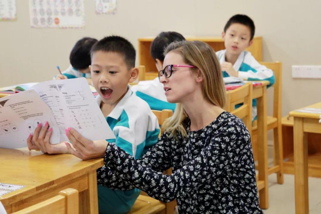 在一堂小学英文阅读课上,老师将全班二十余名学生按照阅读能力高低分成三个小组,分别围坐在不同的学习区域。一个小组在国际教师指导下开展阅读,一个小组使用iPad自主学习Raz-kids的电子书,一个小组在中国英语教师的帮助下半自主阅读。在轻松愉悦、和谐温馨的环境氛围里,老师和孩子们随意谈话、分享和交流,为学生提供有效的帮助,通过适当的线索和提示,引领学生走向下一阶段的学习。在碧桂园学校,这种分层超小班教学、个别辅导的课堂形式已成英语教学常态。