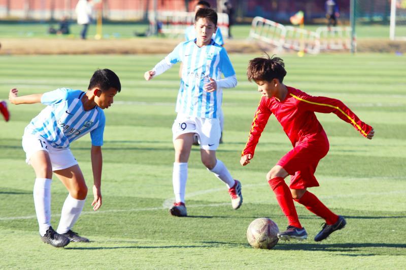 2019年12月4日,“足校联盟杯”青少年足球联赛(U12组),恒大足校学生在比赛中。