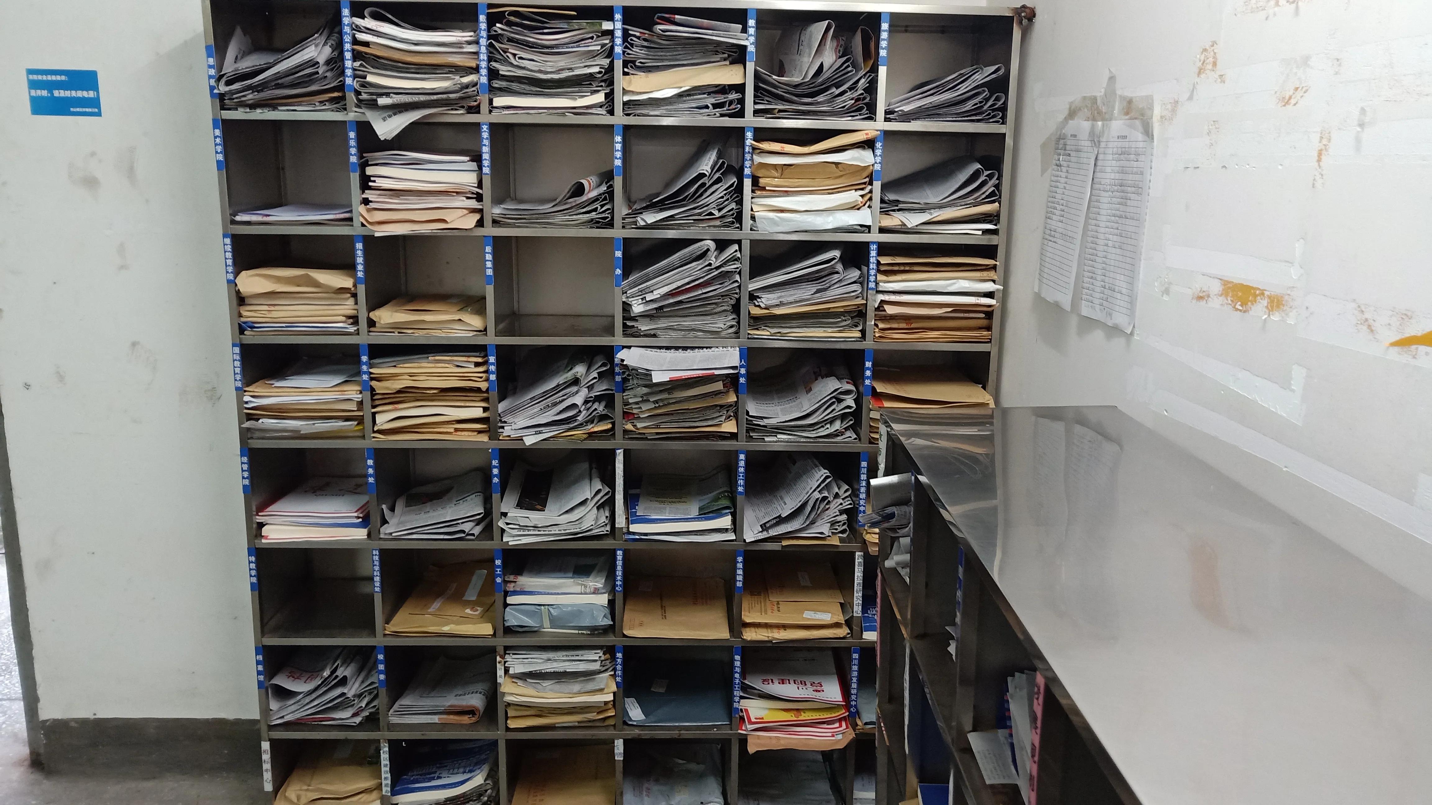 当小编沿着几阶梯子去到收发室里面,入目可见所有学院的报纸收纳柜,如文新学院、经管学院、化学学院等。收发室的廖阿姨,在这已经工作了将近20年,可以说是见证着乐师变化,陪着乐师一起成长。