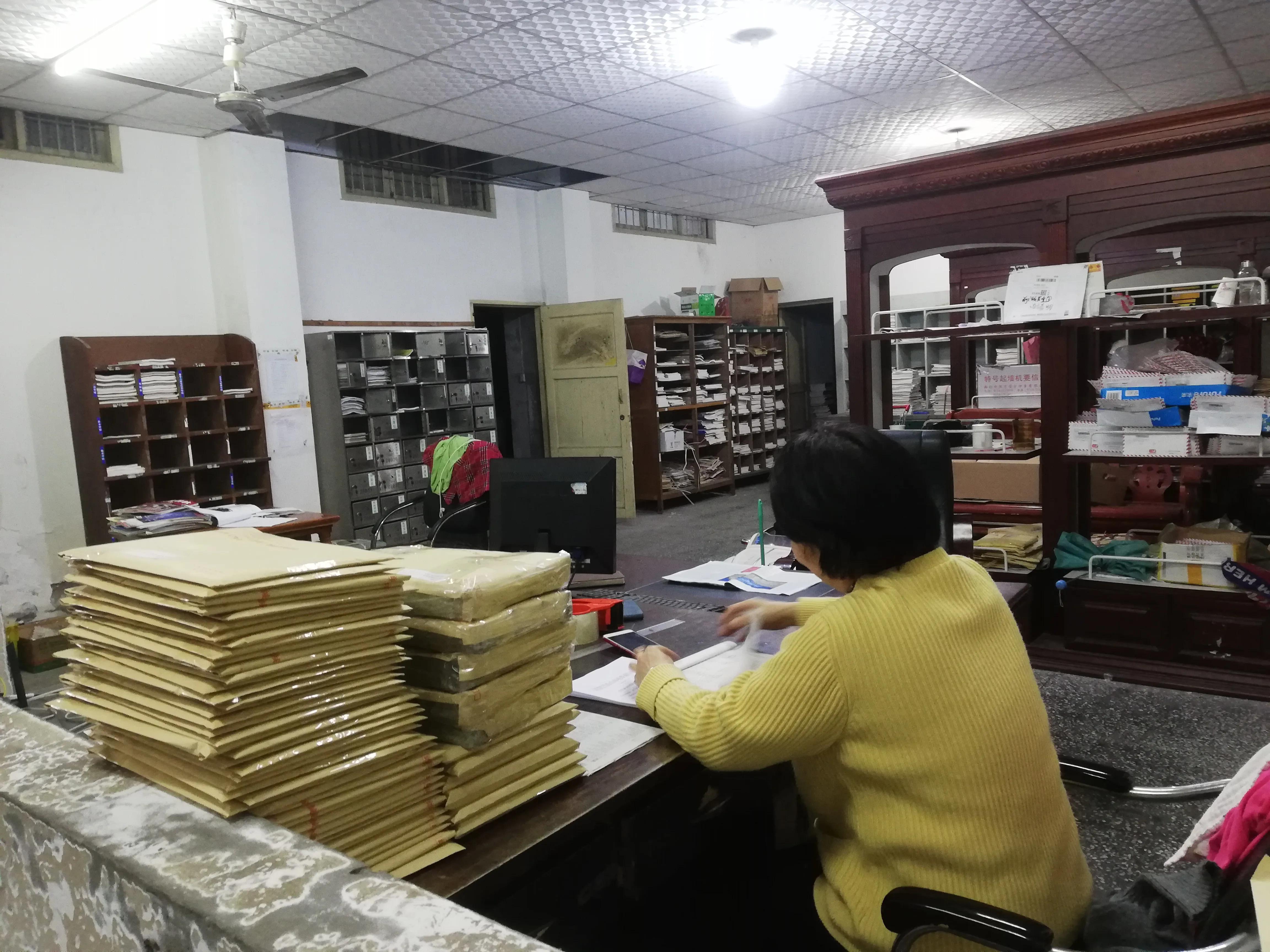现在的收发室,有着高达300种的文件、报纸、信件等,廖老师每天都会和同事一起整理、统计、分发、登记、收拾等。