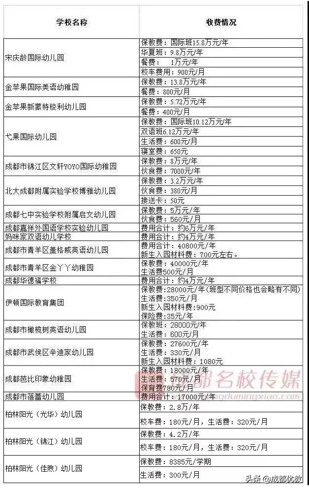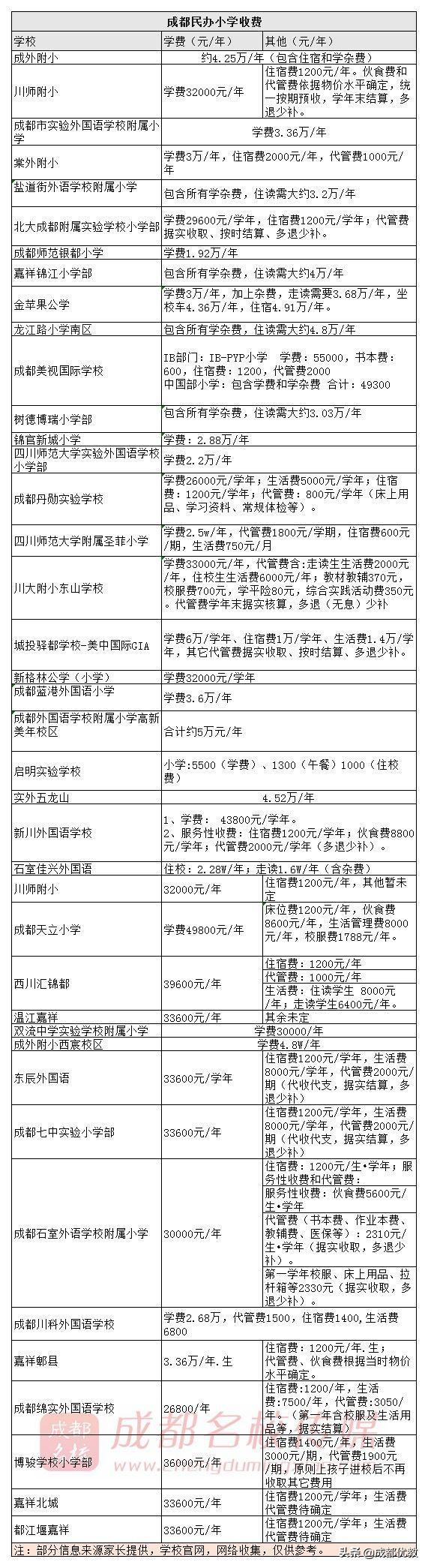 成都民办中小学收费情况如何?以下是一份2019年成都民办小学、中学收费情况一览表,赶紧来看!(数据来自网络,仅供参考)