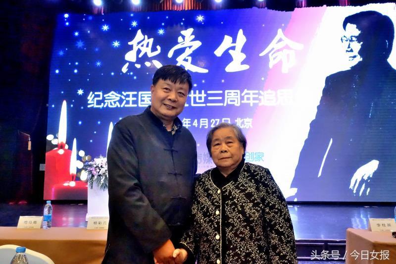 4月27日,张宝瑞在纪念汪国真逝世3闽年追思会上与汪国真母亲在一起