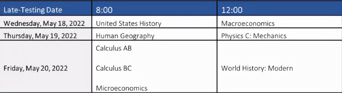 2022年5月2-6日和5月9-13日进行常规考试,5月17-20日进行延迟考试。