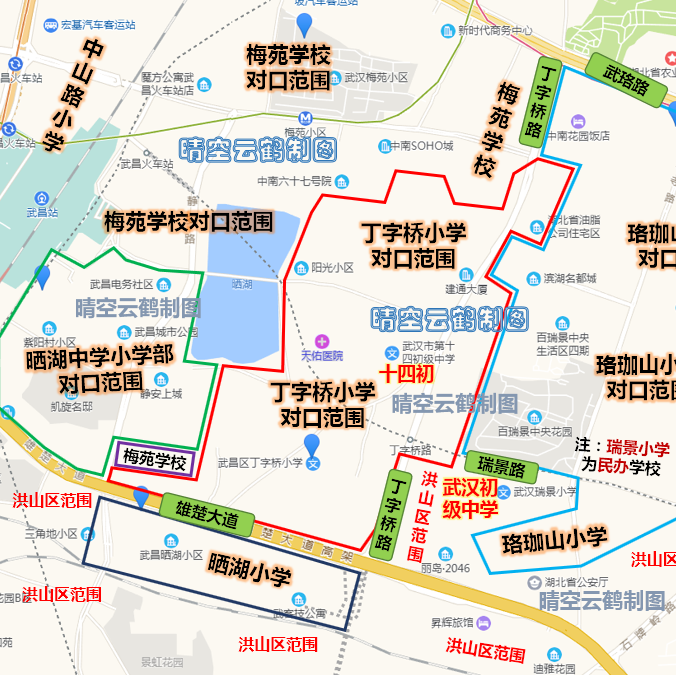 【前言】:本文是武汉学区房系列第52篇。前面的文章分别介绍了上一篇介绍了武昌区南湖一小、南湖二小、水果湖一小、水果湖二小、湖北省武昌实验小学、首义路小学、中山路小学、复兴路小学学校概况及对口划片范围小区的基本情况,本篇晴空云鹤将继续介绍武昌火车站以东的梅苑、晒湖片区的梅苑学校小学部、晒湖中学小学部、晒湖小学及对口划片范围小区的基本情况。