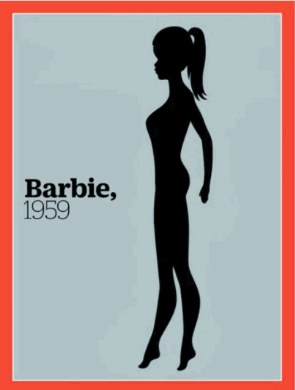最开始,芭比的身材是偏瘦的,形象也比较单一↓