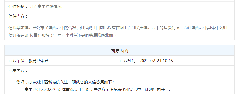 近日,有网友在领导留言板咨询沣西高中建设情况、沣西新城学籍划分、沣东自贸园板块的陕西中医研究院项目进展、以及欢乐谷附近新建的高速出入口等问题,官方一一进行了回复......