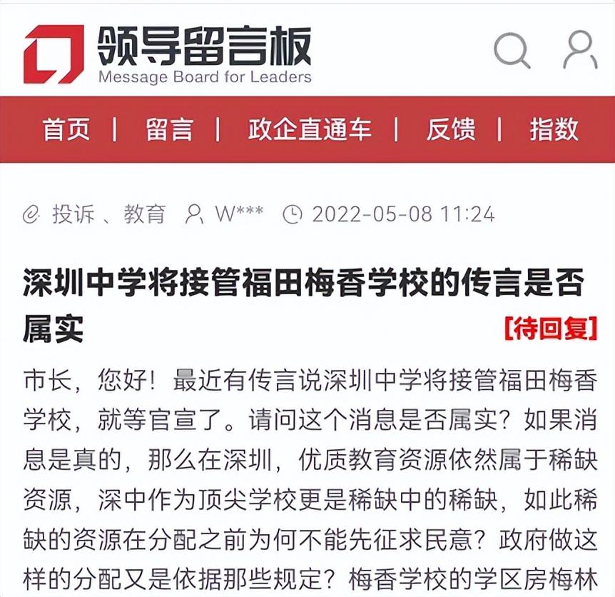 这个消息之前就有传闻,此前,就有网友询问官方,深圳中学是否将接管梅香学校。