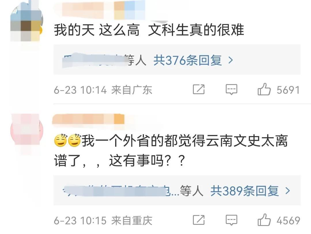 虽然高考录取是分省录取,省与省之间没有可比性,就是说不管高分段人数相差多少,不管录取分数线相差多大,高考录取是没有什么冲突的。可是云南的这个录取分数线这么高,还是想让人探究其中原因。