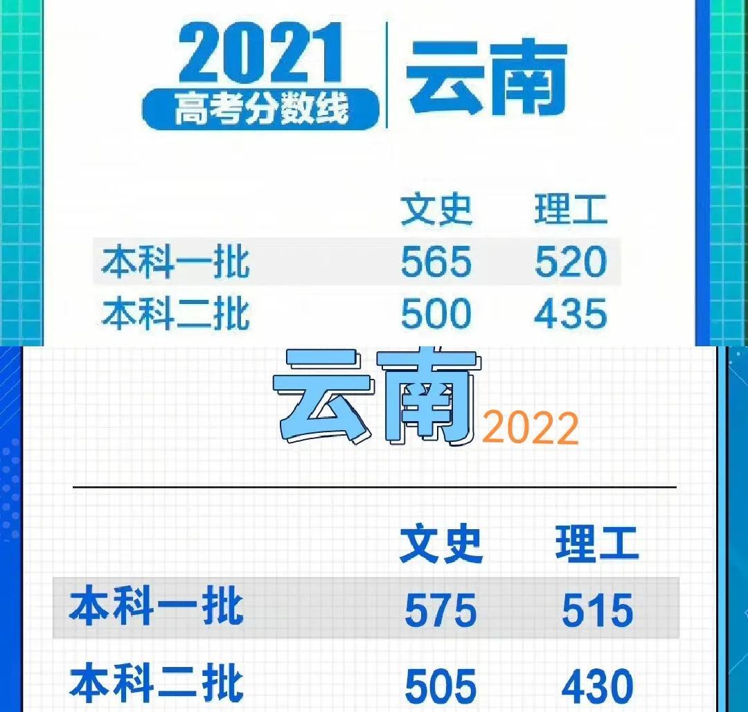 云南文史类两个批次分别增加了10分、5分,理工类降低了5分。