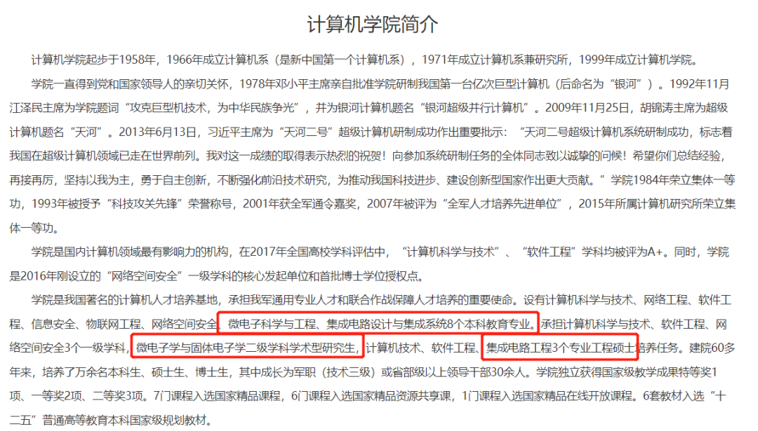 也就是国防科技大学。微电子/集成电路相关专业属于计算机学院,这也是军队唯一获教育部批准开办“国家示范性微电子学院”的单位。