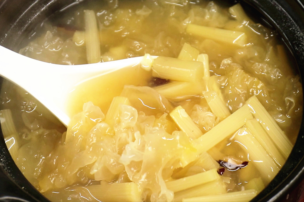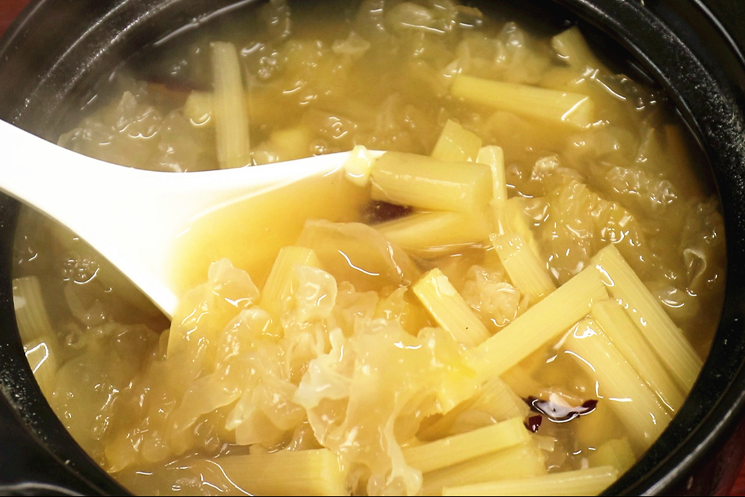 3.40分钟以后清润甘甜的甘蔗银耳汤就做好了,润肺止咳又化痰,大人小孩都能喝。