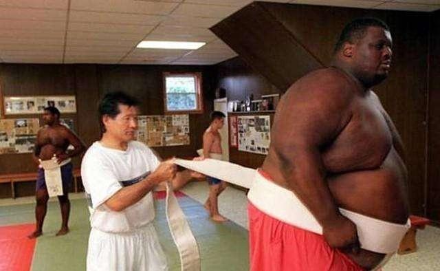 因此,日本的相扑运动员几乎都是满身肥肉,体重在300斤以上,每天都要靠吃大量食物来增加体重。