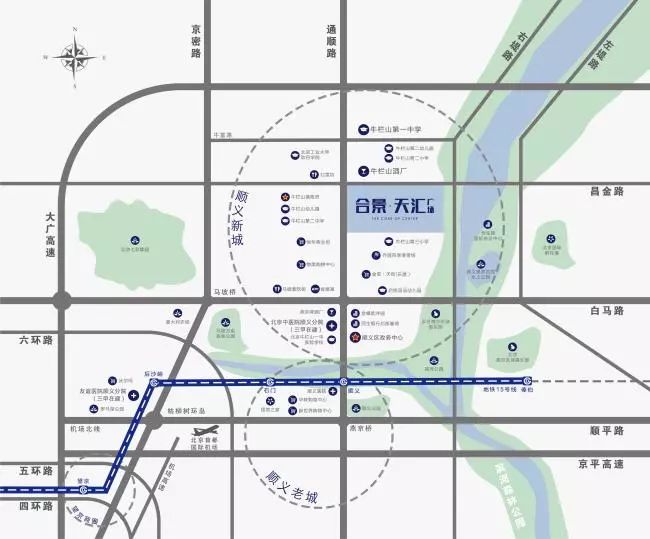 合景天汇广场项目位于顺义区昌金路与通顺路交汇处,周边拥有京承高速、京密高速,六环路等道路,自驾交通方便;紧临潮白河公园、顺义奥林匹克水上公园、北京高尔夫球俱乐部、乡村高尔夫俱乐部、乔坡滑雪场 ,环境非常优越。