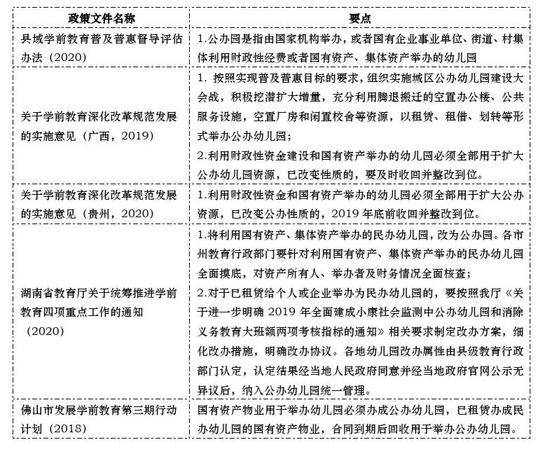 对于《学前教育法(草案)》第十八条中对"利用国有资产、集体资产举办的幼儿园"为公办幼儿园的理解,应当和《县域学前教育普及普惠督导评估办法》第六条中"公办园"的解释保持一致,即只限于国有企业事业单位、街道、村集体利用国有资产、集体资产举办的幼儿园。事业单位是由国家机关举办或者其他组织利用国有资产举办的社会服务组织,社会力量利用国有资产举办的非营利性民办学校即根据《民办学校分类登记实施细则》第七条的规定登记为事业单位(如由杭州市西湖教育基金会举办的民办学校西湖大学),而根据《民办非企业单位登记暂行办法》第五条的规定,如若国有企业事业单位、街道、村集体利用国有资产但份额不高于三分之一是否可以认为不属于公办园?何谓"利用",作者认为应当包括以国有资产作为办学出资的,也应当包括"公建民营"等合作办学形式,但并不应当包括仅仅租赁国有企业事业单位的国有资产的形式。湖南省、贵州省和广西壮族自治区等地对利用国有资产举办的幼儿园进行清理整顿,其中部分省份对于租赁国有资产的民办园亦要转为公办园,作者认为可能是相应省份受学前教育的结构性目标调整不合预期所致。