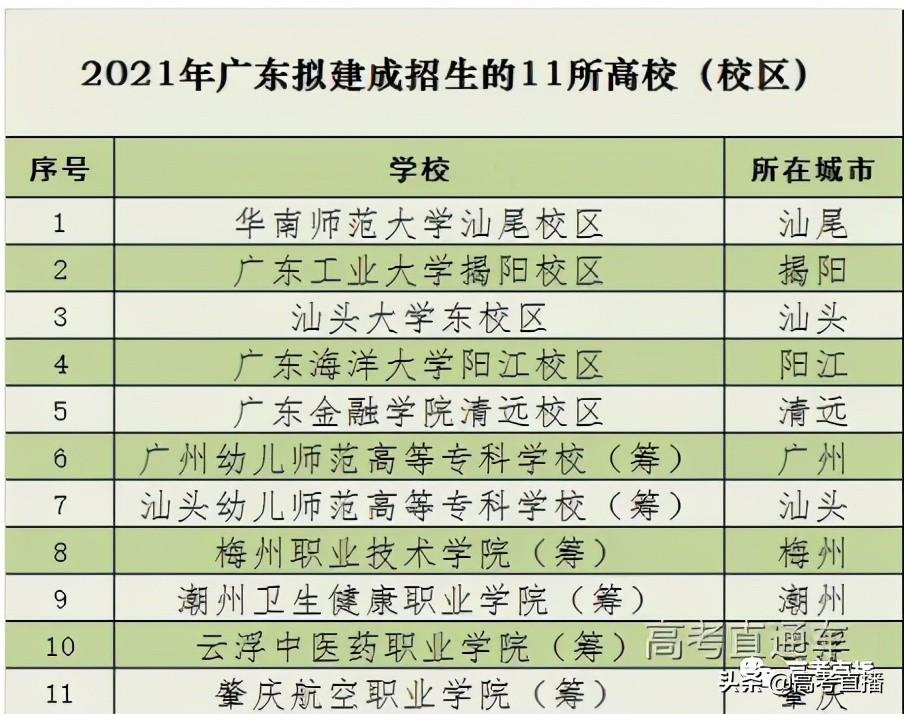 据今年1月举行的2021年全省教育工作会议透露,今年广东将有11所高校(校区)建成招生,其中9所落户粤东西北地区,实现地级以上市本科高校(校区)、高职院校全覆盖。