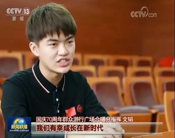 2019年的最后一天,中央广播电视总台央视《新闻联播》节目,对首都师范大学音乐学院文韬同学和国庆70周年群众游行广场合唱分指挥团队进行专题报道,播发了时长3分30秒的新闻特写《我们的2019——以青春之我放歌新时代》。