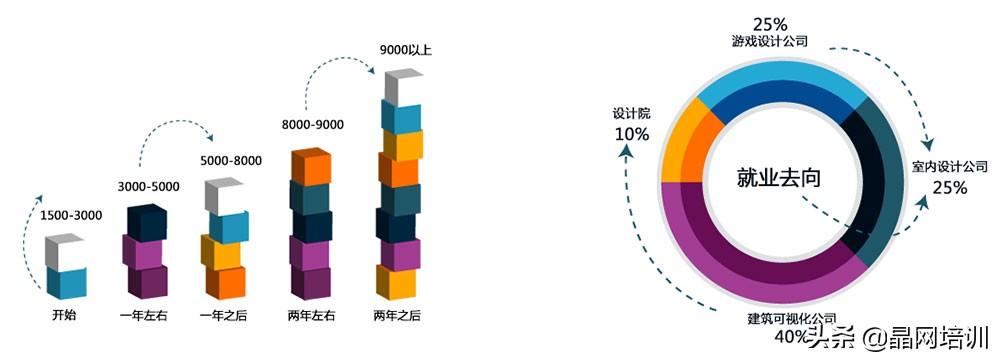 晶网设计培训已有18年历史,课程高度,教学质量非常好,培育了20000学员都能顺利就业,培训后学员就业率达95%左右。而我们BIM课程的学员就业率高达99%。由此可见,学习BIM建筑设计技术的学员就业情况非常乐观。