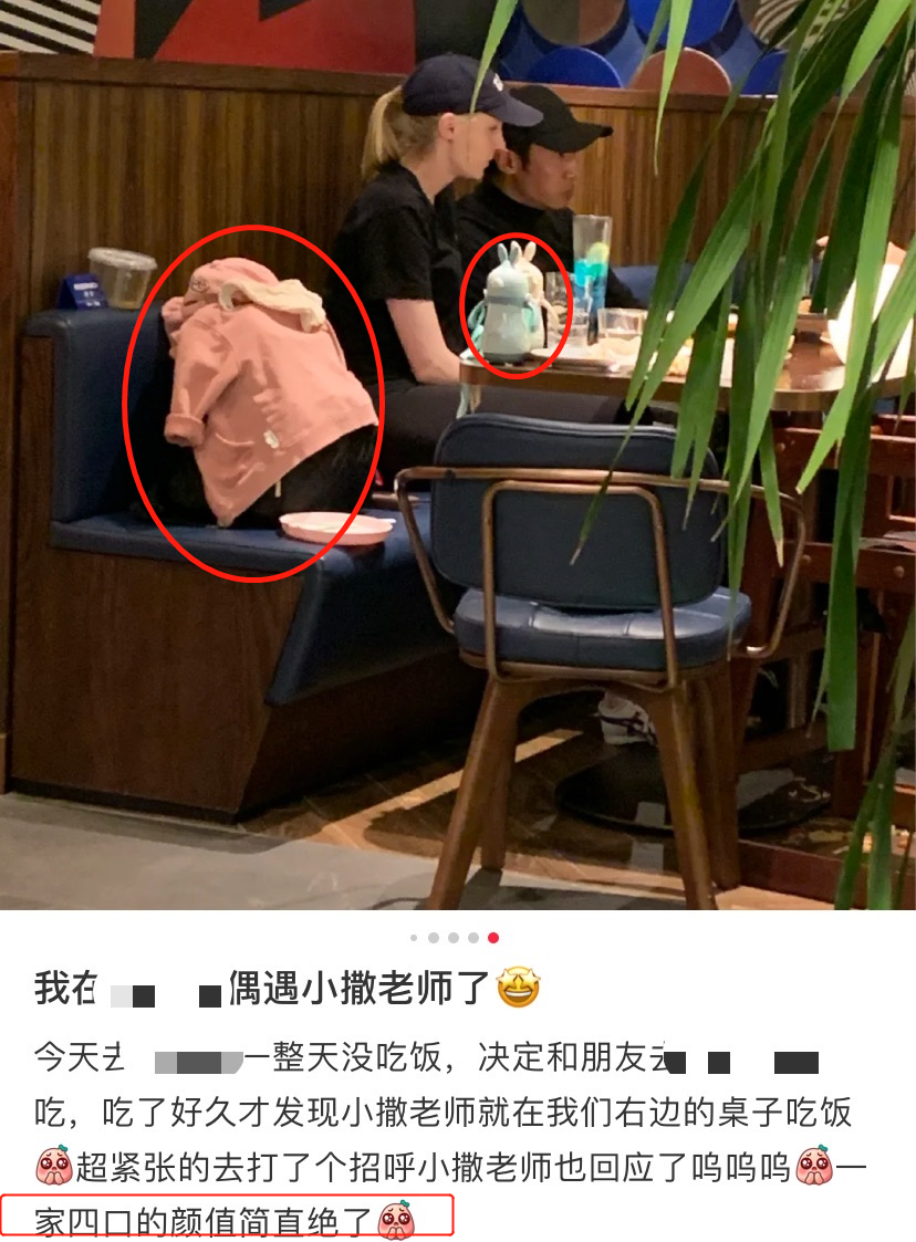 李白和撒贝宁结婚后,育有一对龙凤胎。这对龙凤胎的模样从来没有在网上公开过,不少网友偶遇他们四口出行的时候,也不约而同地都把小朋友的面孔打上了码。今年3月13日,有网友就拍到了撒贝宁一家四口在餐厅的照片。