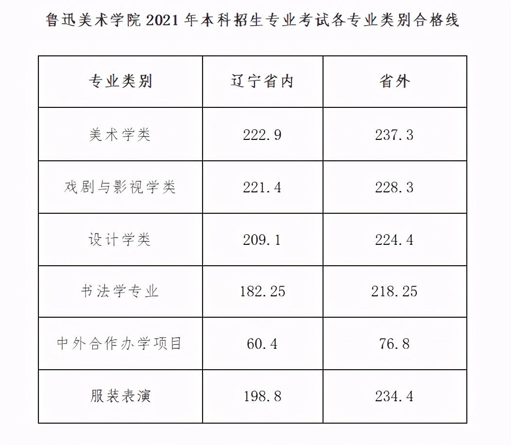鲁迅美术学院2021年本科招生专业考试成绩查询及合格分数线公告