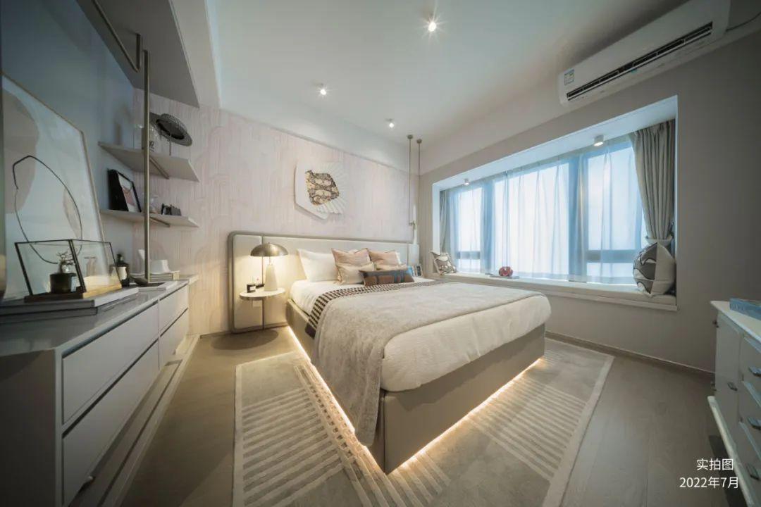 主卧尺度阔绰,两个房间都有几乎整面墙的宽大飘窗。