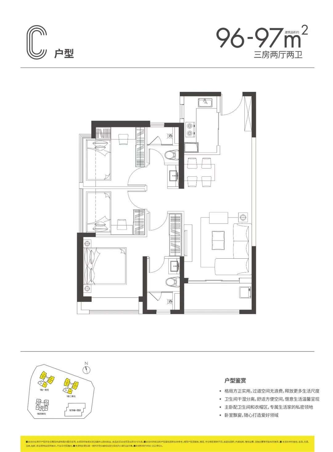 建面约96-97㎡的三房两厅两卫,更符合徐俪的需求。