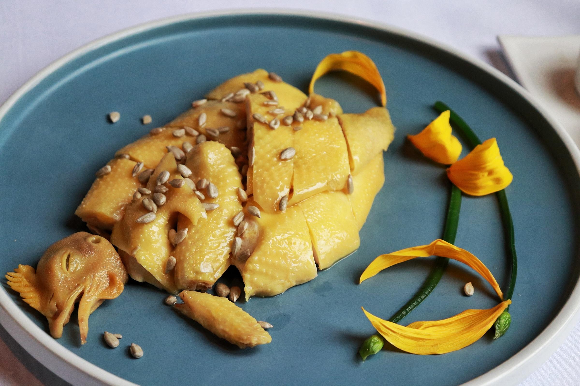 如果来玉堂春暖只能吃一道菜,那必须是白切葵花鸡。完美的熟度把控,造就了爽脆有弹性的外皮,以及鲜嫩多汁的肌肉,迸发出典雅的鸡肉甘美。皮肉间的汤冻消融于无形,化作一啖鸡汁,是醍醐之味。
