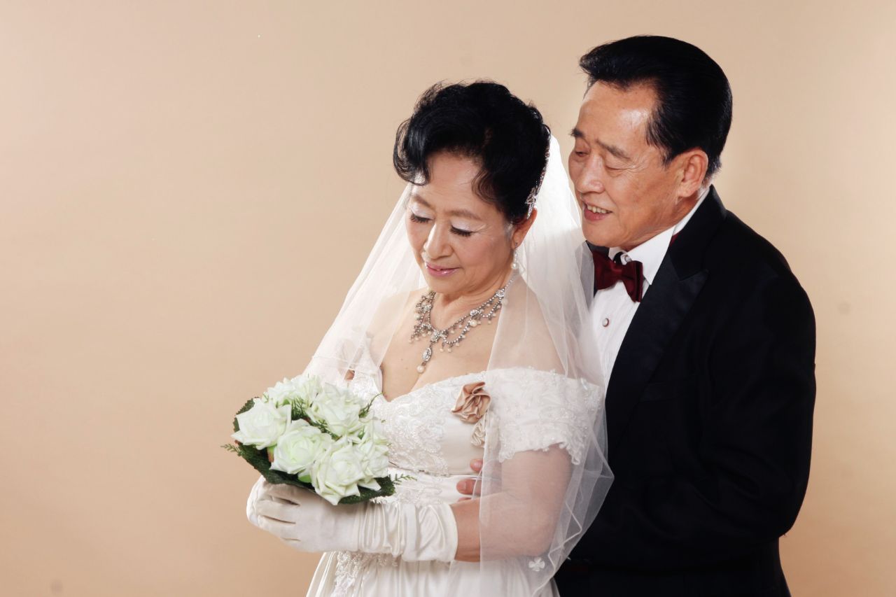 国庆60周年当天,《新潮》生活周刊为共和国第一代元老级军乐指挥王忠保夫妇拍的金婚组照。
