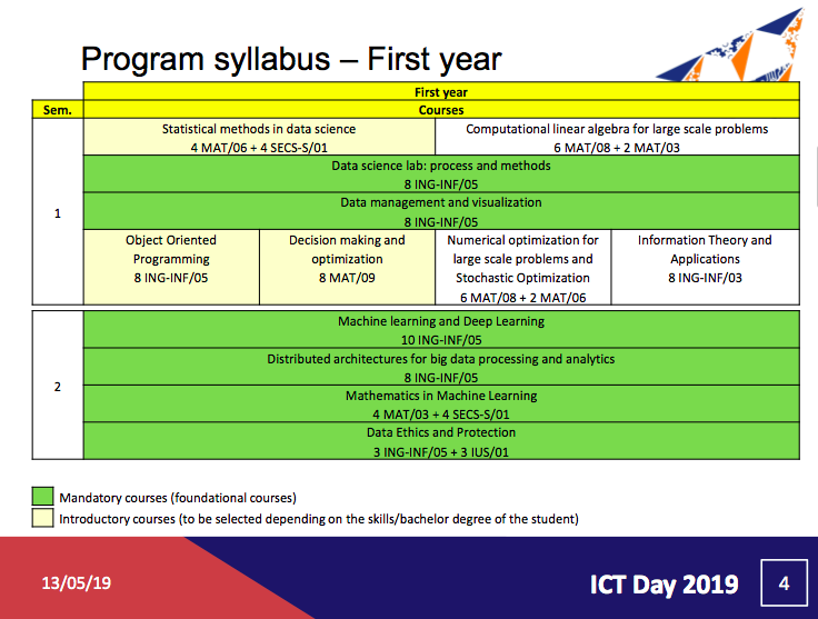 该专业旨在培养多学科的专业人士(数据学家和数据工程师),希望他们通过数据分析技术,来适应多种环境的快速发展。旨在培训工程师能够管理数据,分析整个周期,分析问题需求,收集和存储大量数据,通过数学和统计模型及机器算法分析数据,可视化信息,并将最终提取的知识进行决策目的。