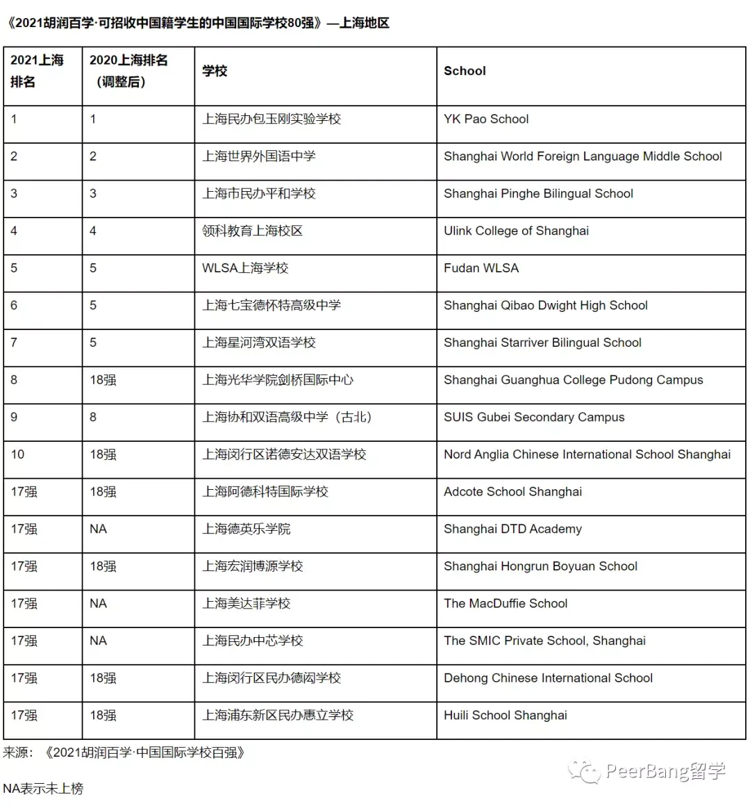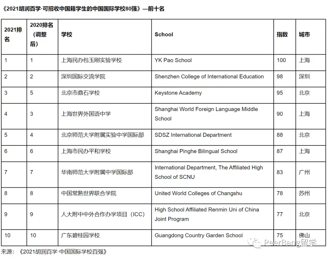 其中前十名的学校中,有3所上海学校--包玉刚,平和,世外继续闯入Top10榜单中。