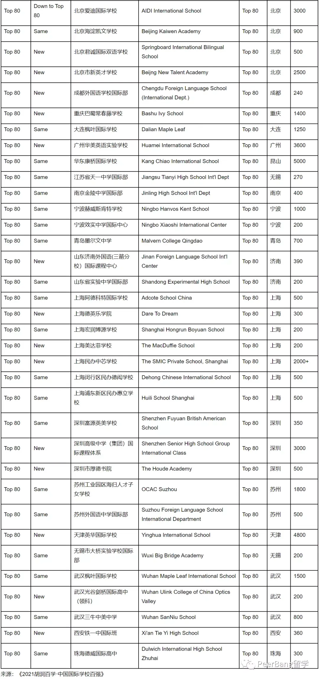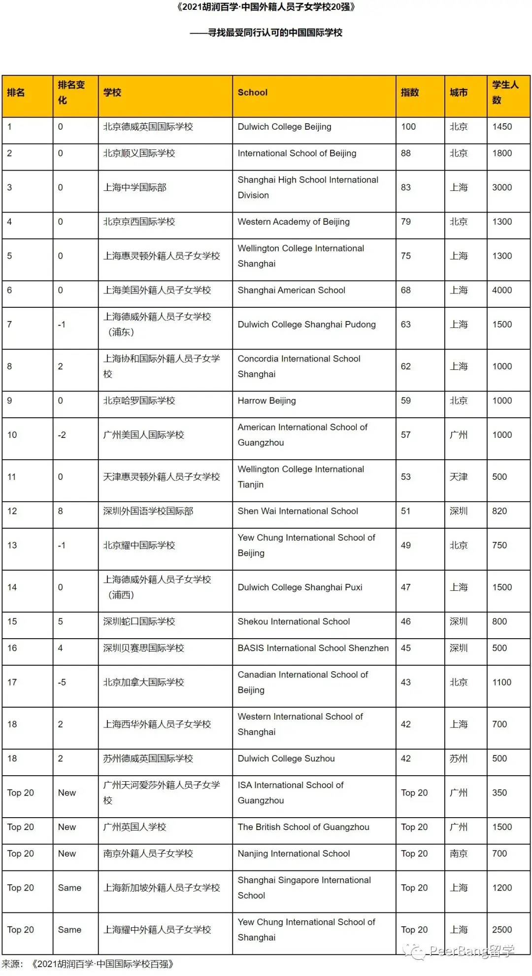 今年,胡润百富旗下国际教育平台胡润百学发布了《2021胡润百学·中国国际学校百强》。这是胡润百学连续第四次发布“中国国际学校”排行榜。