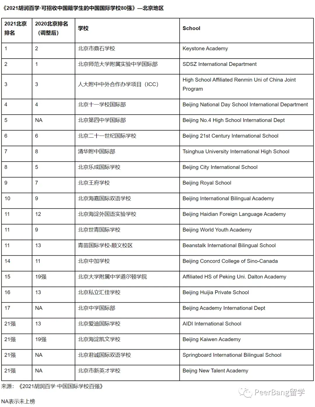 北京鼎石 全国第3、北京第1。成立不到10年的北京鼎石,在今年超过上海世外和北师大附属实验中学国际部,从第5升至第3。