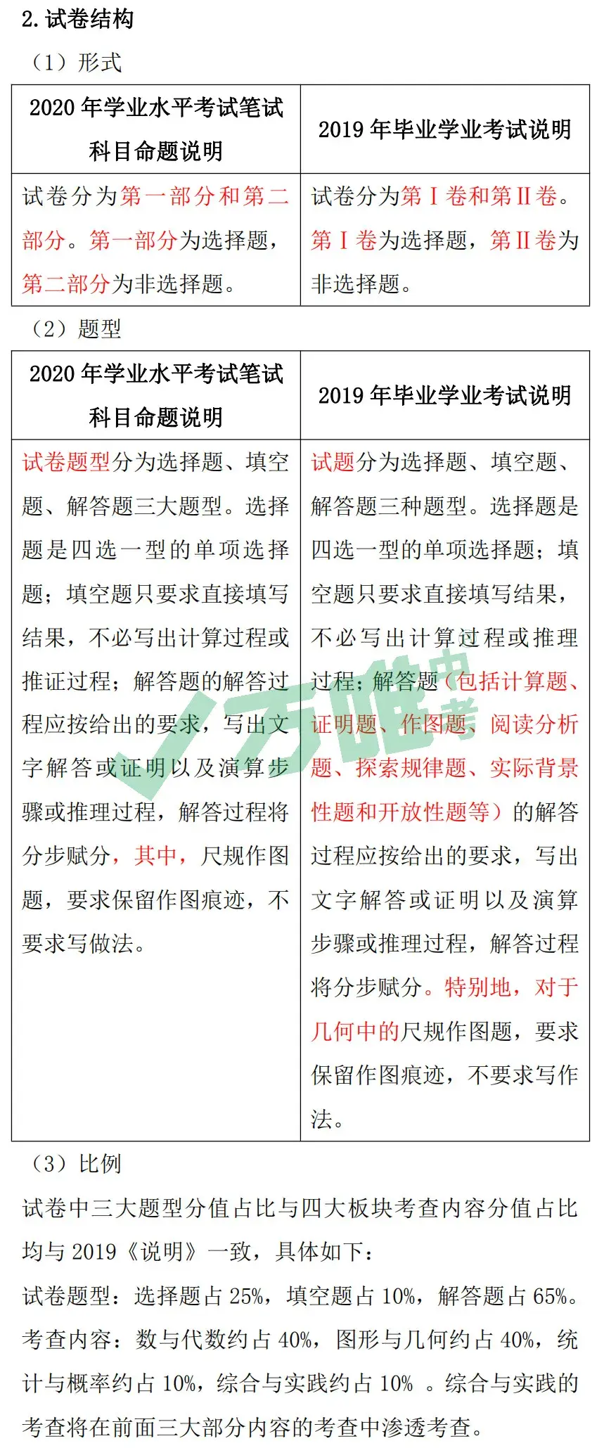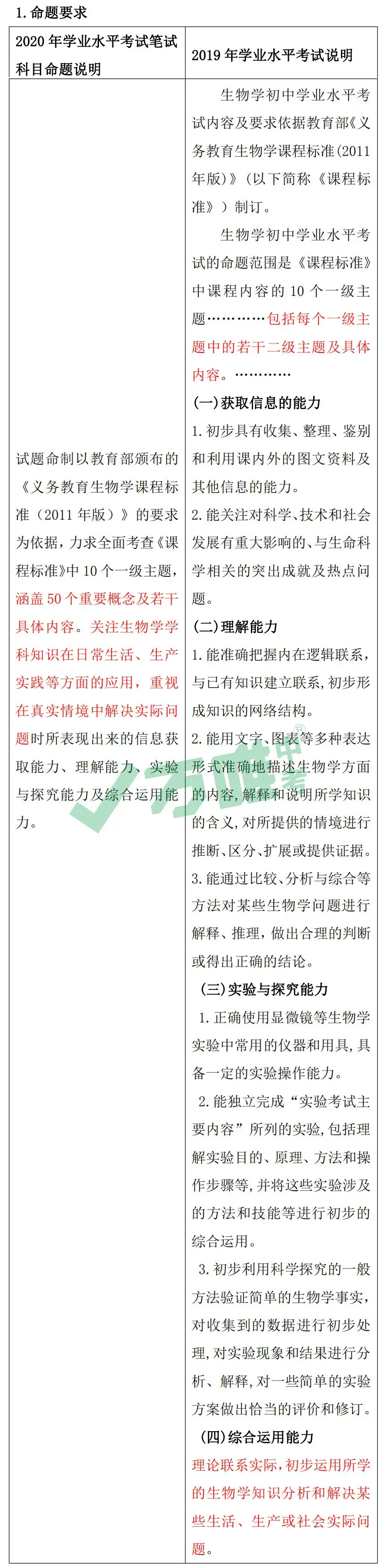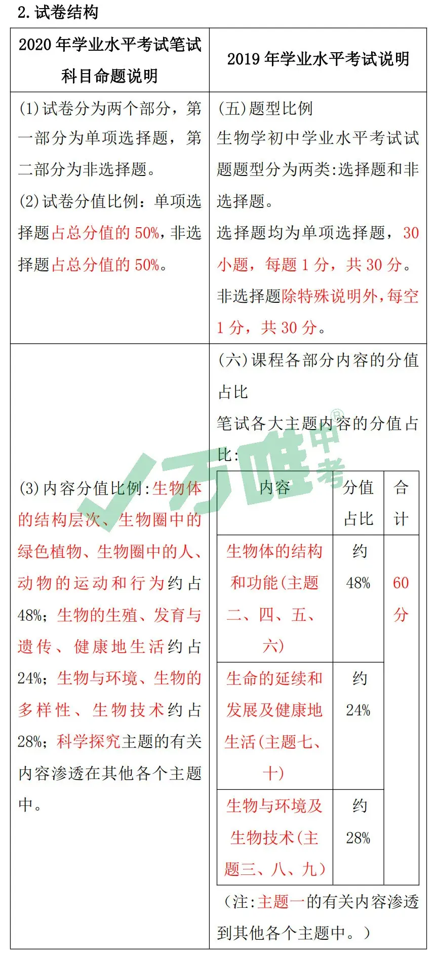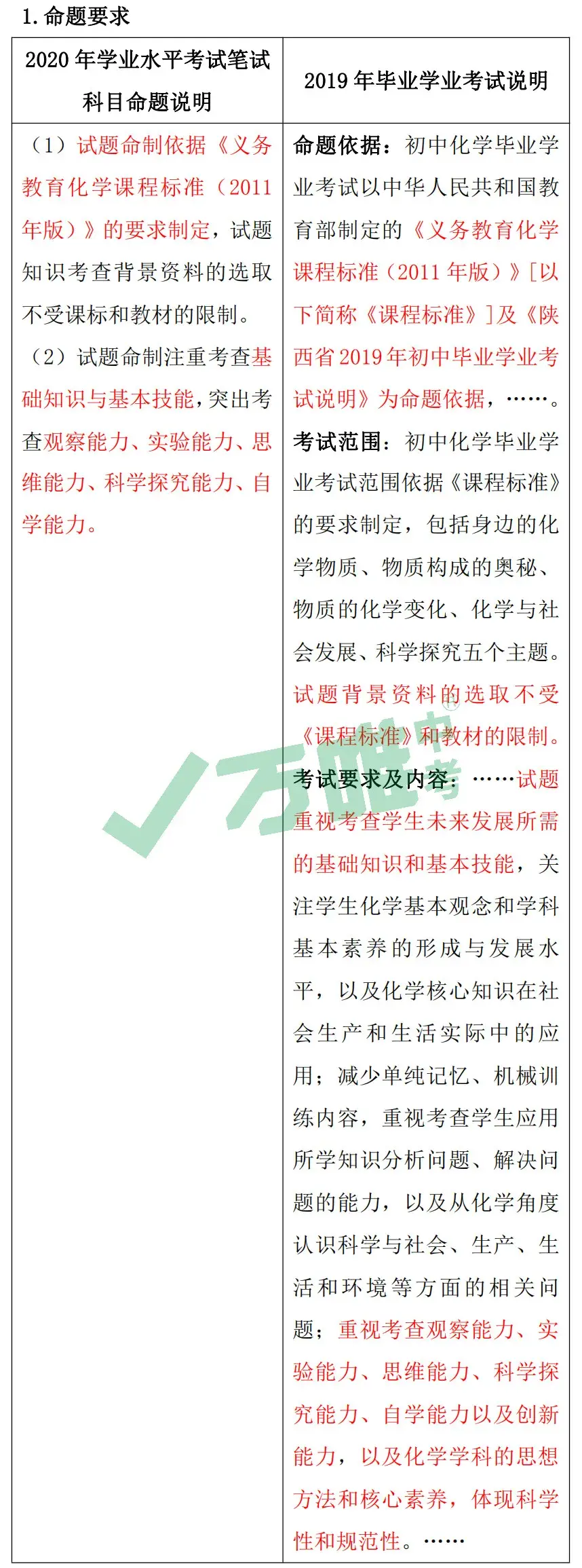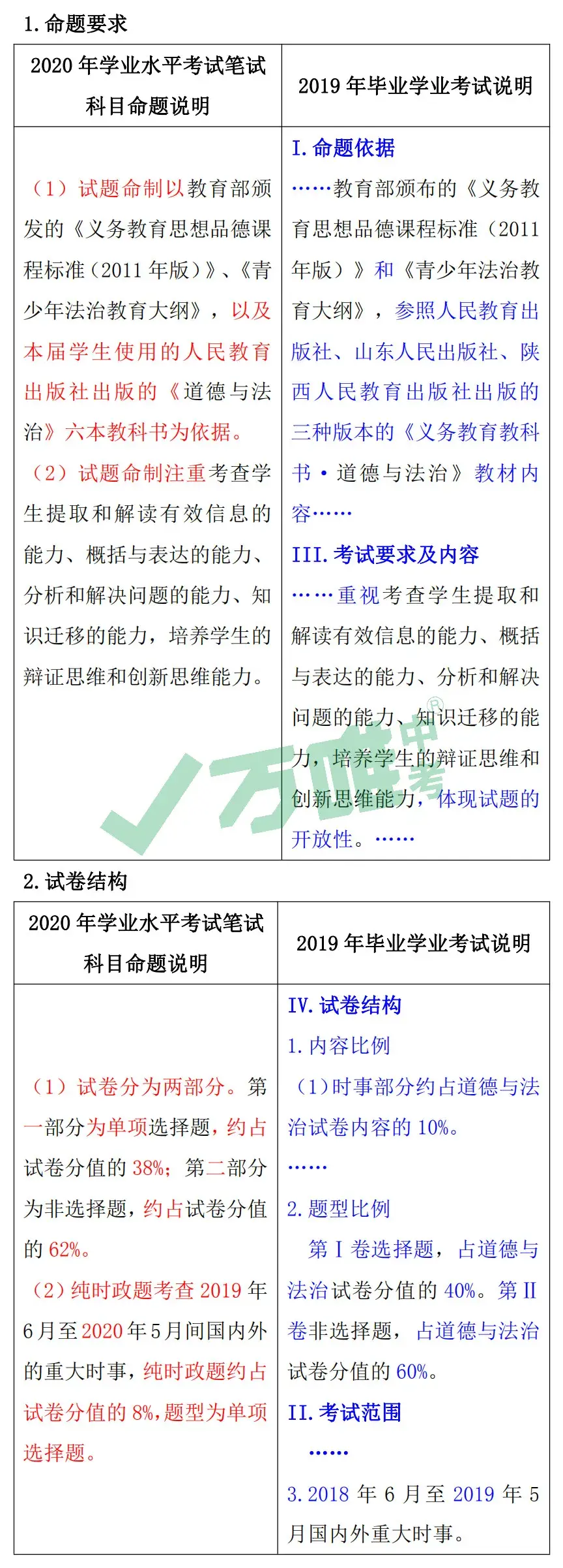2020年陕西省初中学业水平考试笔试科目命题说明与陕西省2019年初中毕业学业考试说明对比,各科具体对比变化如下: