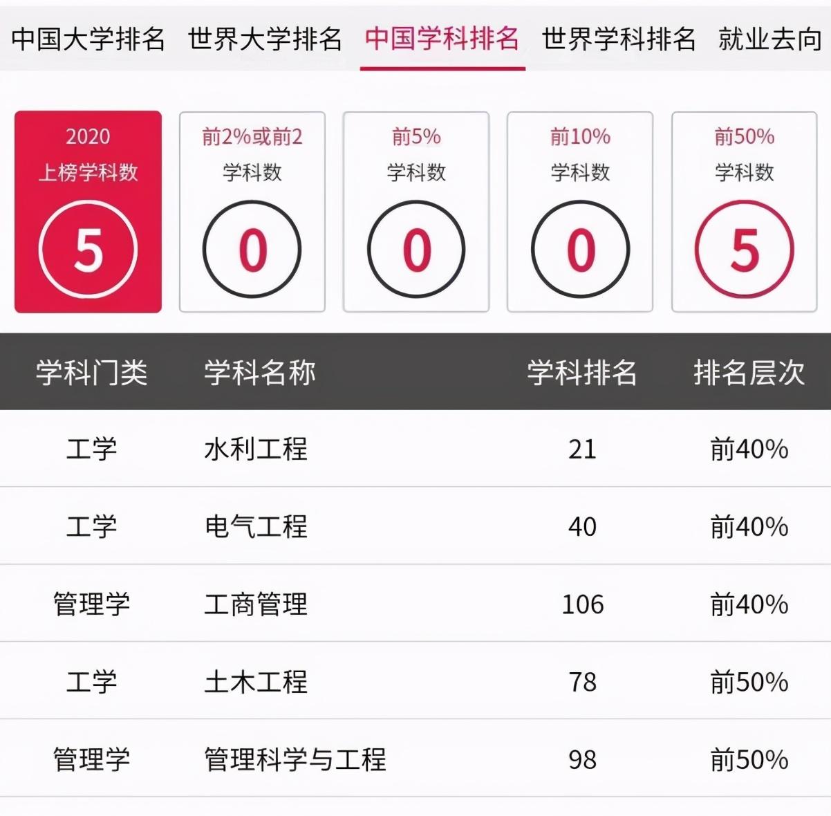 在"2020软科中国最好学科排名"中,三大水利工程、电气工程、工商管理、土木工程、管理科学与工程5个学科入选榜单。