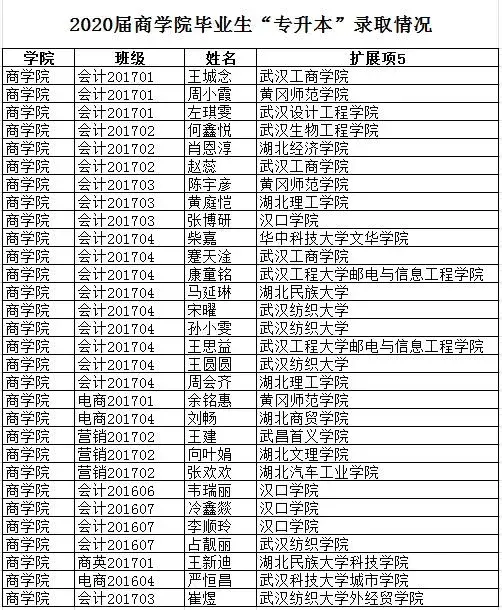 交通学院11人报名,9名同学分别被湖北工程学院、湖北汽车工业学院、武汉工商学院、江汉大学等省内6所本科院校录取。