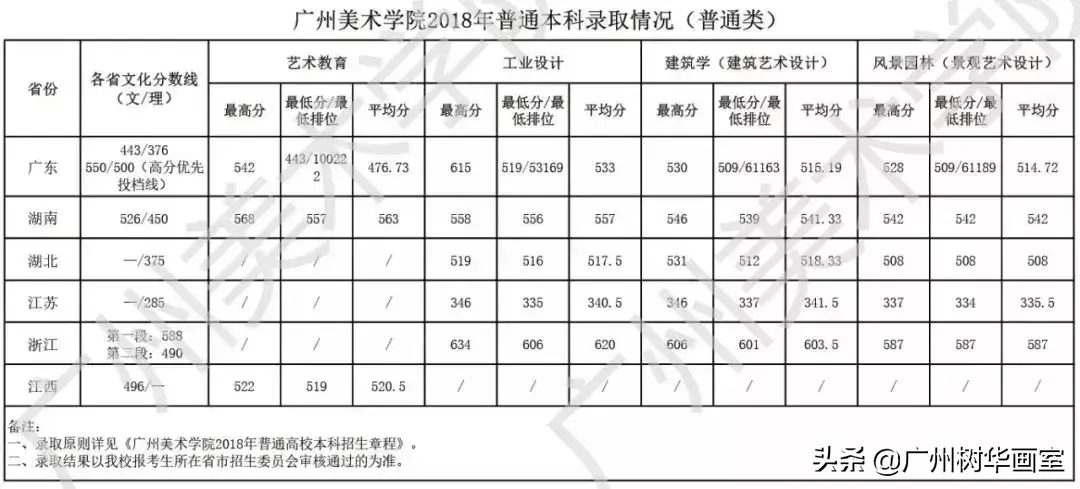 (2)美术学(美术教育)专业:考生需参加广东省美术术科统考,统考专业成绩和文化成绩达到广东省美术类本科院校录取分数线,在投档考生中按艺术类统考专业投档总分从高到低择优录取。