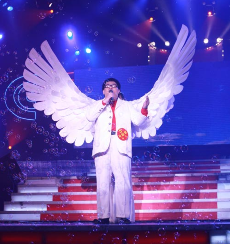 头扎白毛巾、身着羊皮袄、系着红腰带的他在一众选手中显得格外引人注目,再加上极为特别的唱腔,很快获得了第一个月的月冠军。