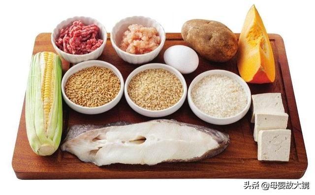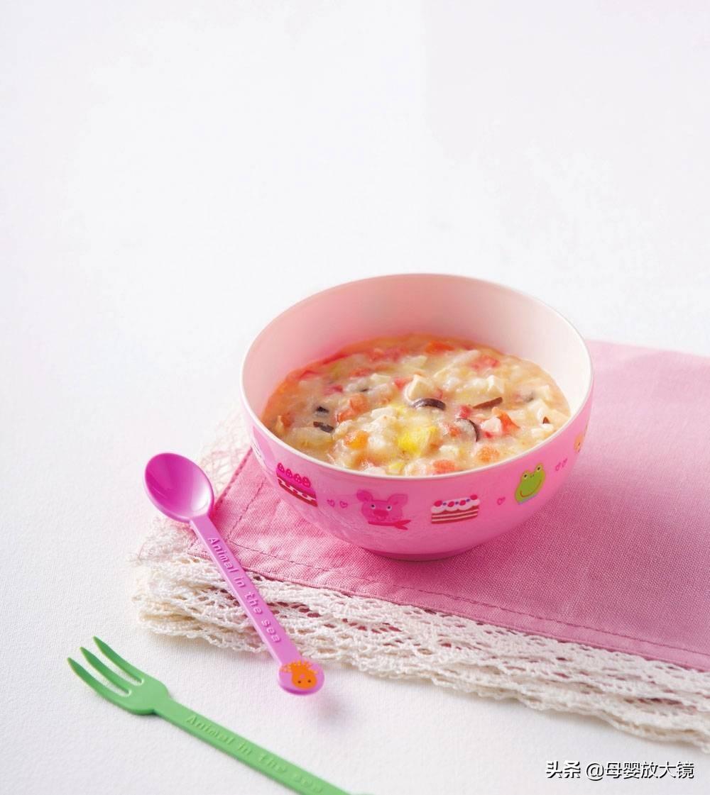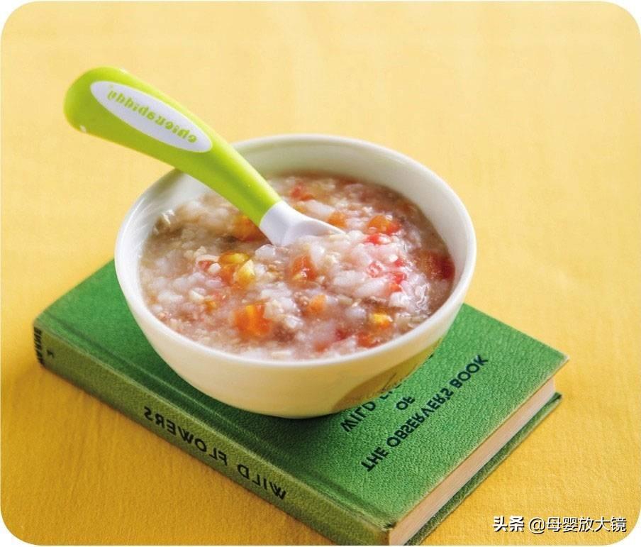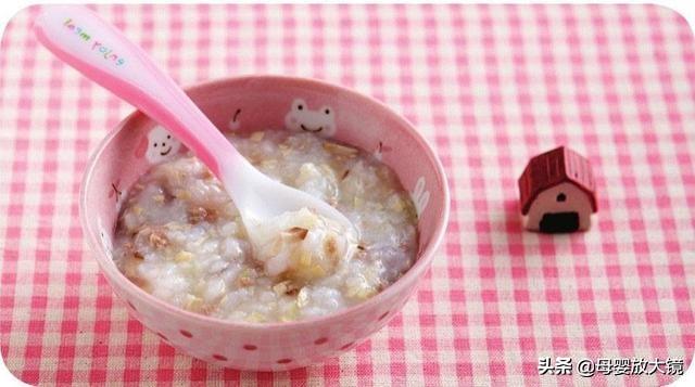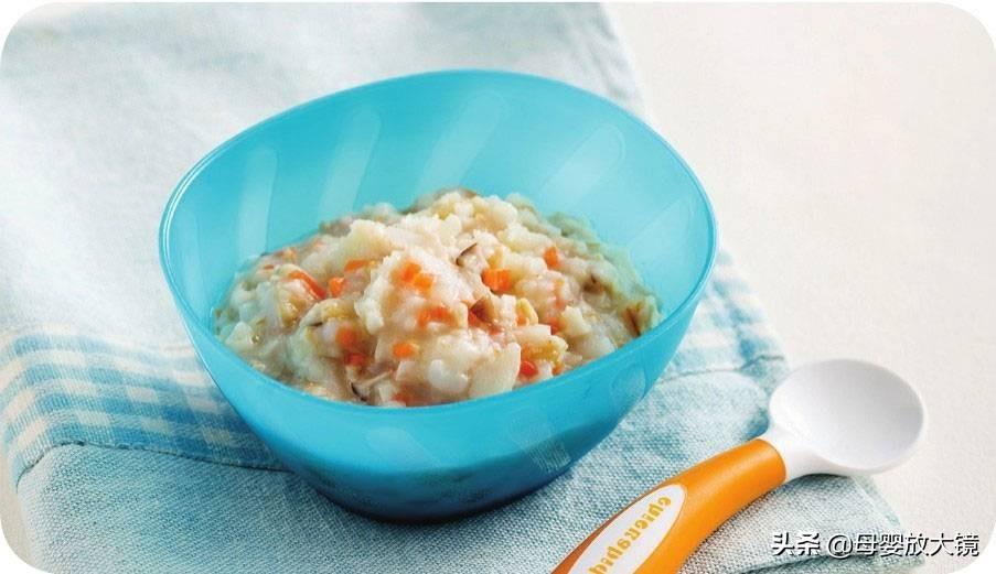 杏鲍菇切成0.5cm大的小丁,西蓝花取花部位切成0.5cm大的小丁,入滚水汆烫后备用。白米洗净泡水1~2小时后,煮成五倍粥。豆腐切成0.5cm大的小丁,烫过后再加入杏鲍菇、西蓝花与少许水煮熟,拌入稀饭,煮滚即可。10、香蕉马铃薯泥