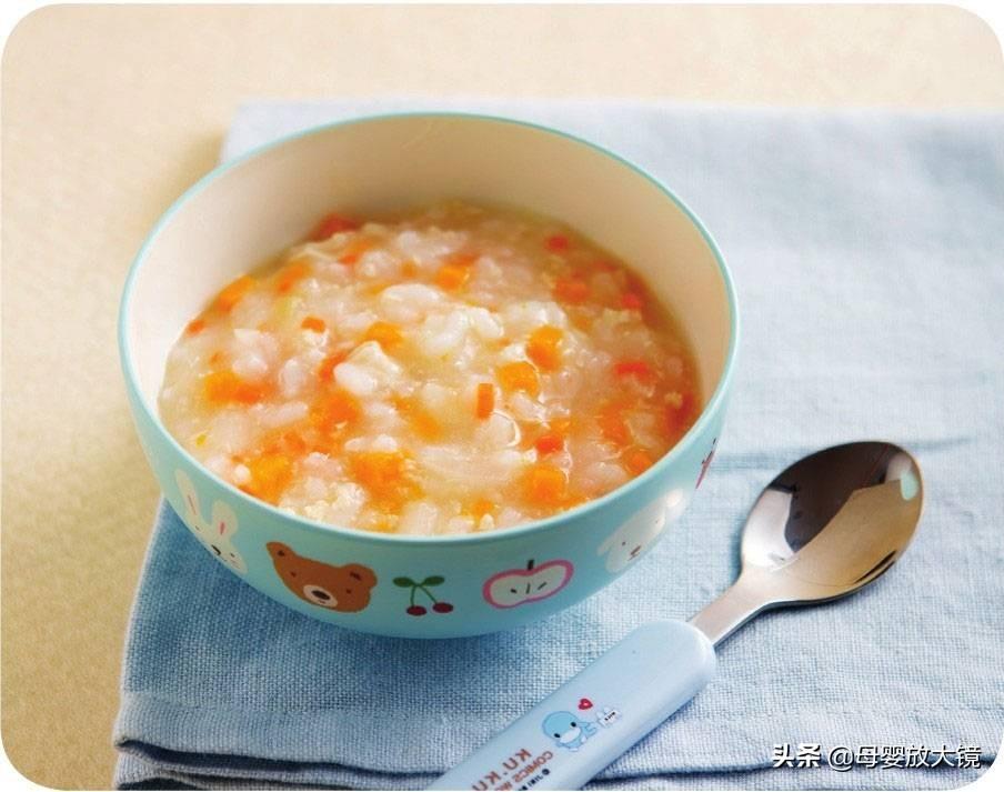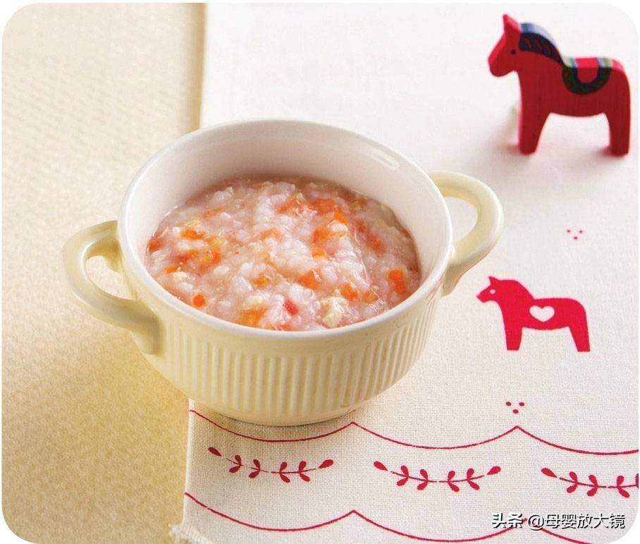 苹果洗净削皮去籽,切成0.5cm大的小丁备用。糙米洗净泡水1~2小时后,煮成五倍粥后稍微放凉。将苹果丁拌入糙米粥,搅拌均匀。8、胡萝卜卷心菜牛肉粥