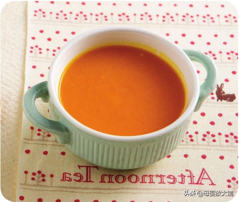 卷心菜洗净,香菇去蒂,与鳕鱼各切成0.5cm大的小丁,分别入滚水汆烫后备用。白米洗净泡水1~2小时后,煮成五倍粥。豆腐切成0.5cm大的小丁,烫过后再加入鳕鱼肉、香菇及卷心菜与少许水煮熟,加入稀饭,煮滚即可。16、苹果南瓜浓汤