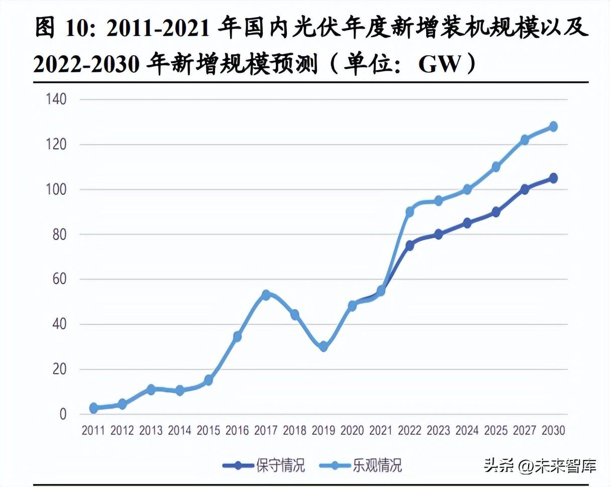 平价上网背景下,光伏行业持续快速发展,2022 年有望成为光伏装机大年。2021 年, 国内光伏新增装机 54.88GW,同比增加 13.9%,其中,分布式光伏装机 29.28GW, 占全部新增光伏发电装机的 53.4%,历史上首次突破 50%。在利好政策刺激下,2022 年 H1 国内光伏新增装机达 30.88GW,同比高增 137%;多晶硅、硅片、电池、组件 产量同比增长均在 45%以上;出口总额 259 亿美元,同比增长 113%。CPIA 亦将 2022 年全球光伏新增装机量预测由 195-240GW 上调至 205-250GW,将 2022 年我 国光伏新增装机量预测由75-90GW上调至85-100GW,由此可见,CPIA认为2022H2 我国光伏新增装机量将在 54.12-69.12GW 之间,下半年光伏装机量有望进一步提速。