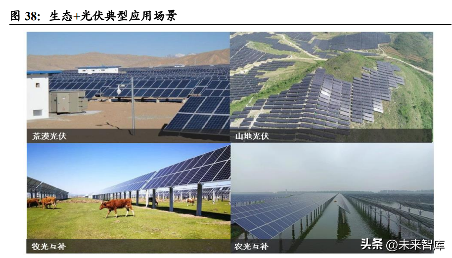 光伏+生态修复是一种太阳能与土地多重利用的模式。光伏电站可以向电网输送清 洁的电力,同时还可以减少地面受到的日照辐射和水分蒸发量,增加降水,加上清 洗电池板时喷洒的水分,促进了植被的生长和恢复,这对于蓄水保土、阻风固沙、 调节气候、改善生态环境具有重要意义。这种模式既能把丰富的太阳光照资源转化 成清洁能源,同时又可以降低生态治理成本,促进生态改善,实现了光伏发电与恢 复植被改善生态的双赢。 部分光伏电站已经显现生态修复作用。国家电投青海共和荒漠光伏电站生态恢复项 目七八月植被覆盖度增加了 15%,光伏板下 10 厘米、20 厘米、40 厘米的土壤含水 量分别增加 78%、43%和 40%,风速比园区外降低了 40.3%,空气相对湿度比公园 外增加了 2.8%;宁夏腾格里沙漠光伏项目年均发电量 5.35 亿千瓦时,组件下沿距 地高度最低 150 厘米,采用草方格围沙方式,3 年后植被覆盖率达到了 90%;宁夏 毛乌素沙漠光伏项目位于黄土高原水蚀性荒漠上,光伏板下面种植了苜蓿和枸杞。 光伏板减少了辐照强度,枸杞的开花季比当地同类枸杞长了 5 周,产量增加了 29%。