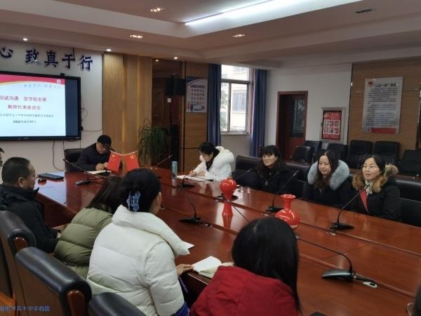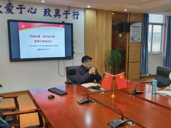 2月17日下午,雪花纷飞,寒气袭人,五十中学西校教育集团贵池路校区三楼会议室却暖意融融,时时传来欢声笑语。合肥市五十中学西校教育集团教师代表座谈会在这里顺利举行,校长胡志杰、副校长汤雪晴参加了会议。胡志杰校长对于参会教师积极参与学校民主管理表示感谢,并希望各位教师对于学校现有的发展状况提出意见和建议,以便于能够更好地服务师生家长,提高教育教学质量,提升学校的竞争实力。