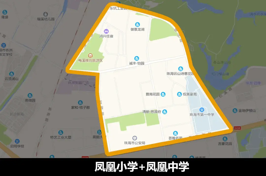 (备注:为何双凤凰不包含华发四季、水墨兰庭等小区?因为这一片预计将会会给群贤小学,学区并不稳定,因此把这几个楼盘暂时排除在双凤凰学区之外。后续它们会作为第八个新兴学区:群贤小学+凤凰中学)